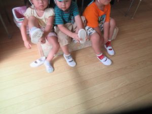 お靴をパンパンして靴箱へ。