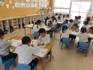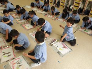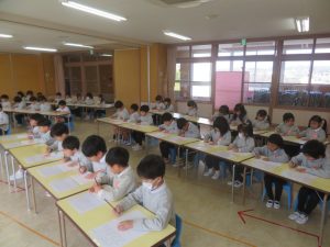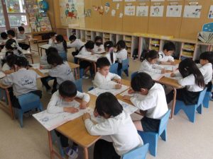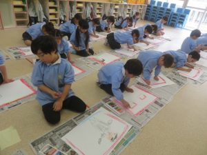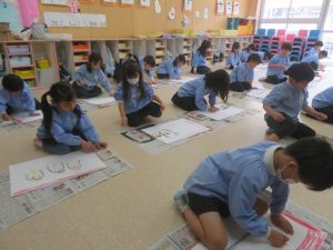 年長さん、最後の習字です。