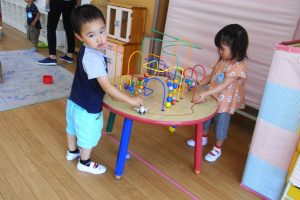 朝、みんな揃うまで室内遊び。