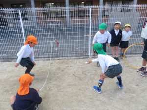 大縄跳びしたり、