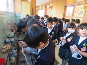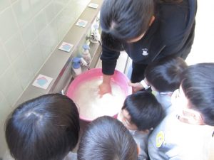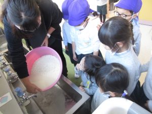 もち米を洗う様子を見ました。