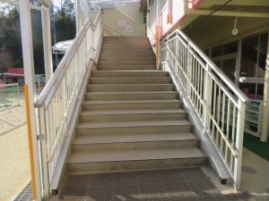 全員、外階段から3階へ
