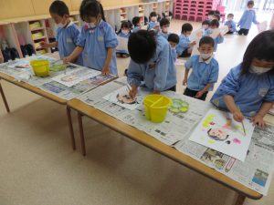 今日は年長組もお母さんの顔。