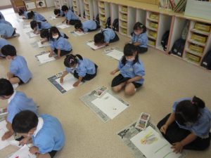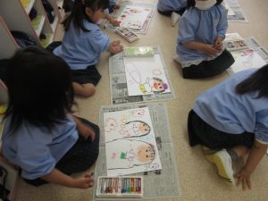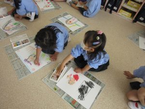 昨日の園外めぐりの絵を描きました