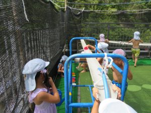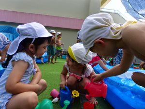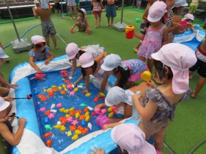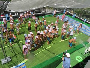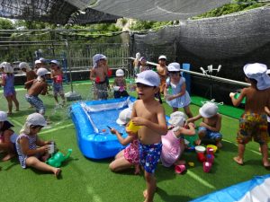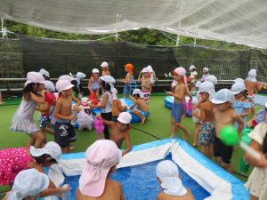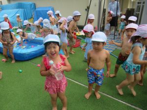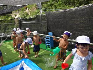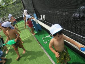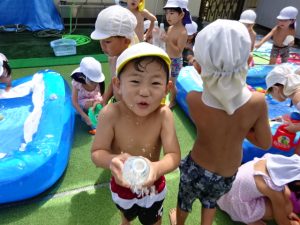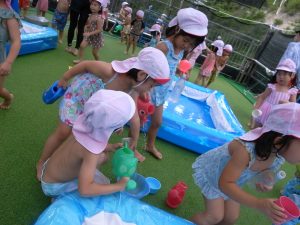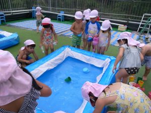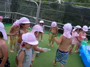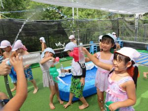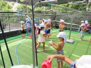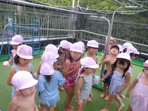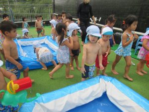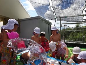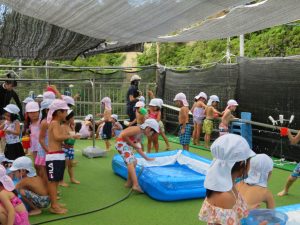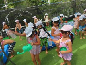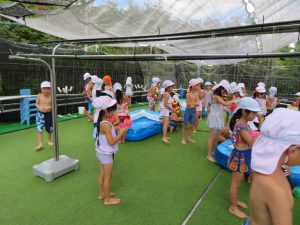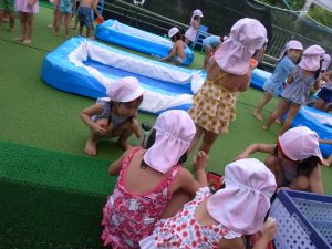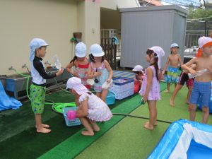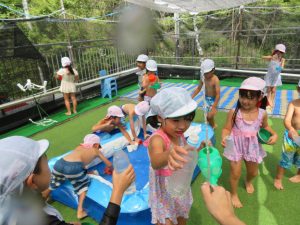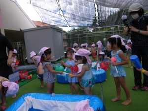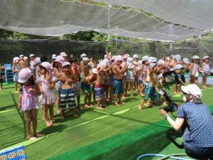 水遊びでは、写真屋さんのお話を聞いて