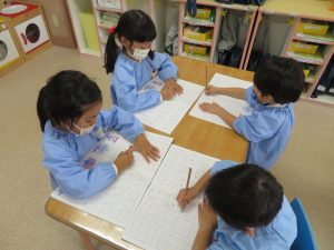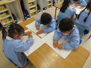 ひらがなのワークを行いました。