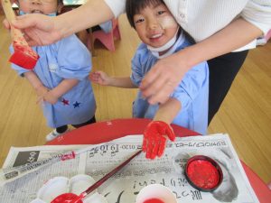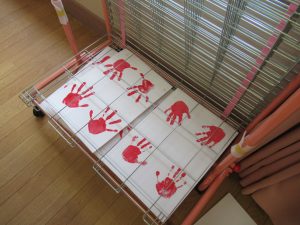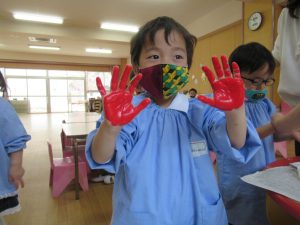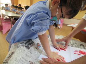 先生と一緒におててをペタっ!