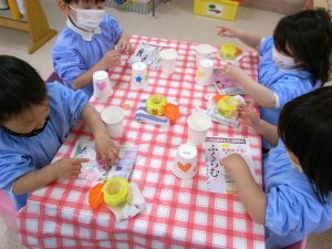 紙コップを使って作りました~!