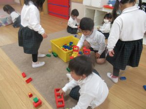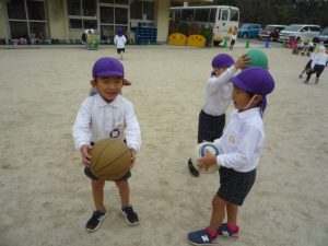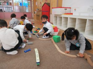 朝の自由遊びも、子どもたちのなかで