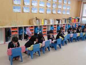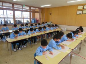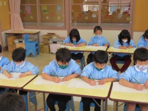 字の練習をしていた年長組さんまで