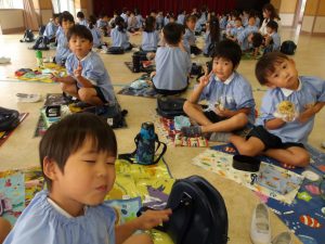 お着替え袋を持ち帰ります。